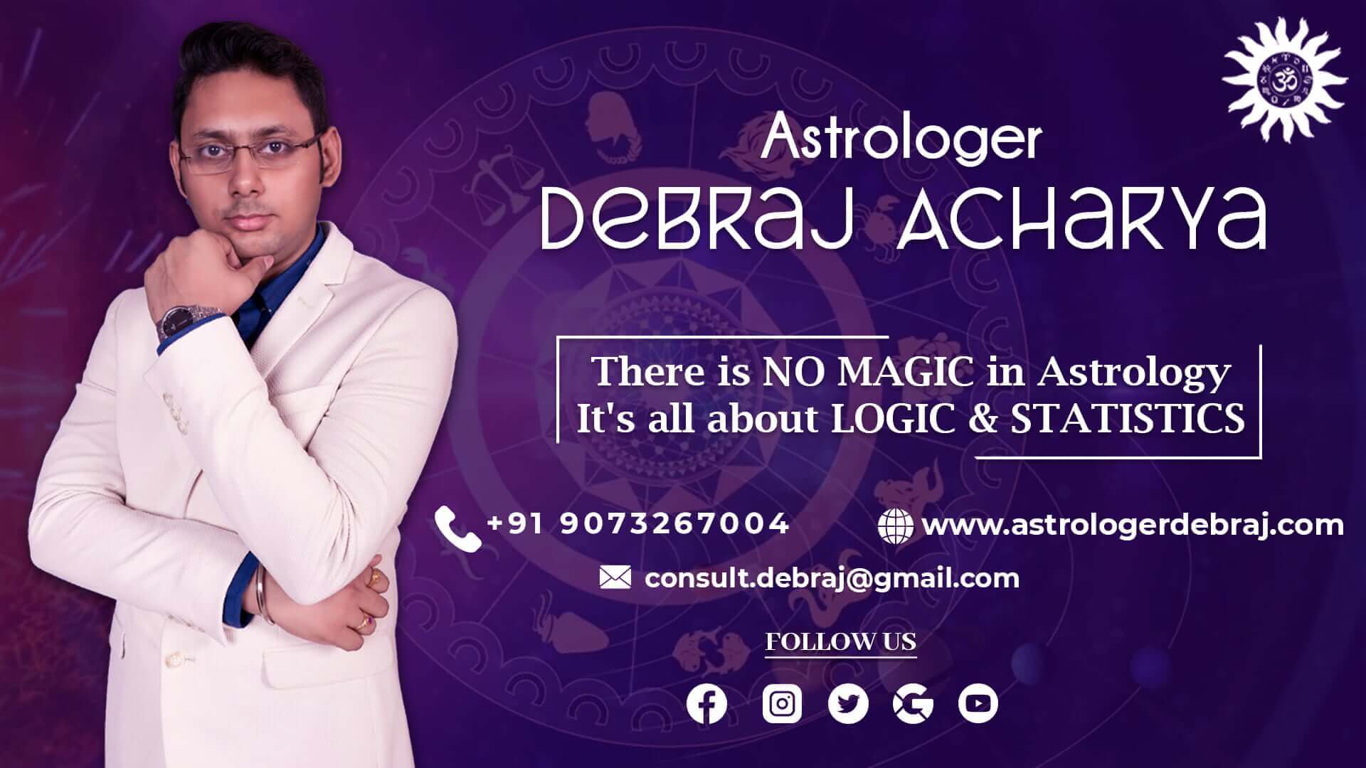 Astrologer Debraj Acharya is not only known for accurate astrological consultation, his knowledge is extended to diverse fields including namology, numerology, Vastu, and match-making. His remedies are client-centric and hundred percent result-driven. The best part of his consultancy is he does not force you to take the remedies. It is completely your decision whether you will take remedies or not after the consultancy. Astrologer Debraj believes, he can show you the way to achieve success in life, but, he is not the person to force you for anything. It is one of the biggest pieces of evidence of authenticity that we all demand from an astrologer.